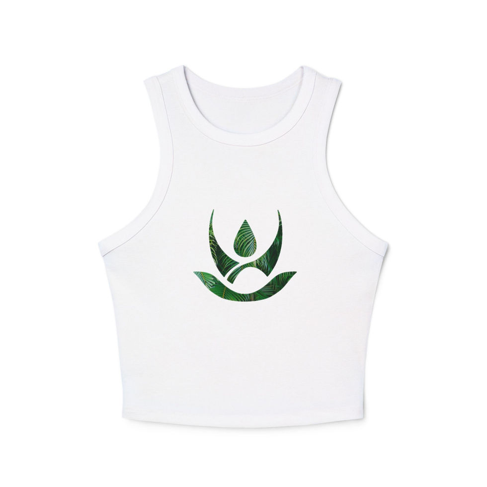 Women's Micro Rib Racer Tank Top with Emerge Tropical Design